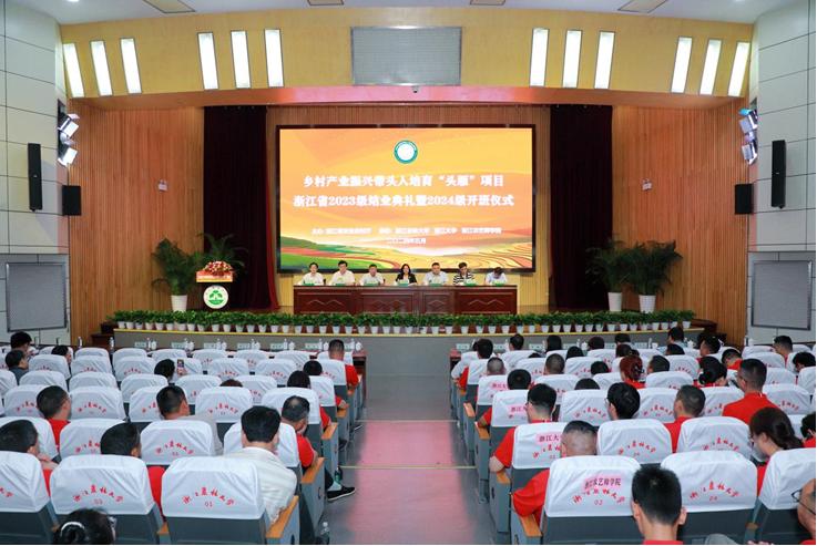 5月24日下午,鄉(xiāng)村產(chǎn)業(yè)振興帶頭人培育“頭雁”項目浙江省2023級結業(yè)典禮暨2024級開班儀式在我校東湖校區(qū)舉行。