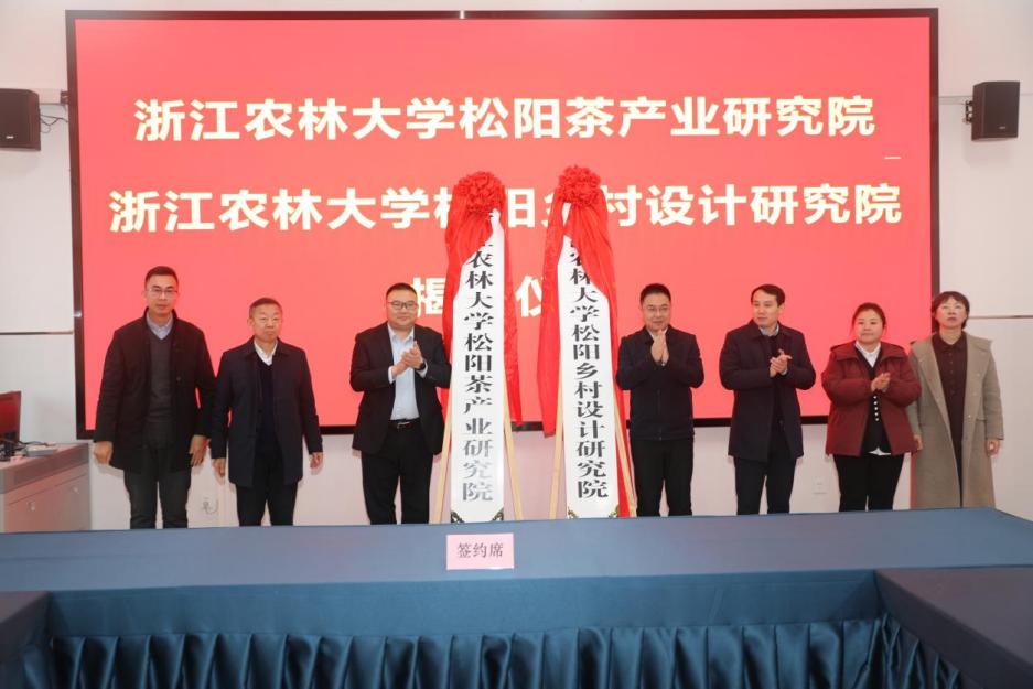 雙方舉行了浙江農林大學松陽鄉村設計研究院簽約儀式,共同為浙江農林大學松陽茶產業研究院、浙江農林大學松陽鄉村設計研究院揭牌。