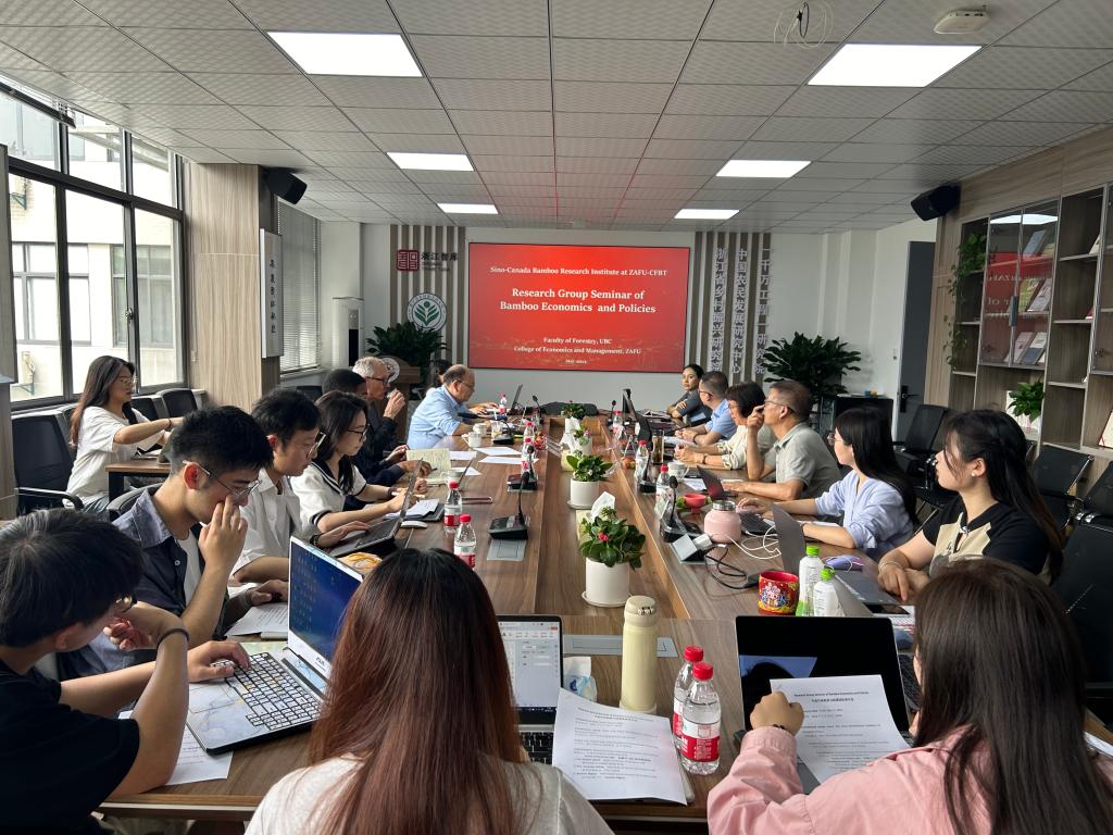 5月23日,我校經(jīng)濟(jì)管理學(xué)院竹林經(jīng)濟(jì)與政策團(tuán)隊與加拿大不列顛哥倫比亞大學(xué)(UBC)林學(xué)院聯(lián)合召開中加竹林經(jīng)濟(jì)與政策合作團(tuán)隊研討會。加方竹林經(jīng)濟(jì)與政策研究團(tuán)隊首席專家、UBC林學(xué)院院長Robert Kozak教授,副院長Guangyu Wang教授,中方竹林經(jīng)濟(jì)與政策研究團(tuán)隊首席專家、副校長沈月琴教授,經(jīng)管學(xué)院相關(guān)負(fù)責(zé)人及師生代表20余人參加會議。
