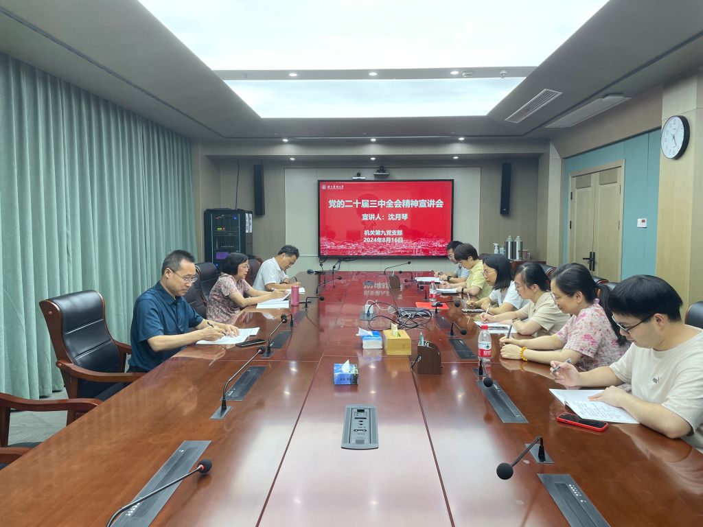 8月16日,副校長沈月琴面向機關第九黨支部宣講黨的二十屆三中全會精神,教務處、質控中心、教發中心全體黨員同志參加學習。
