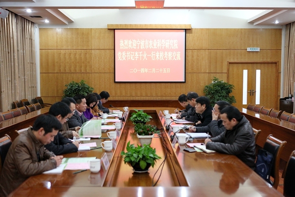 浙農(nóng)林大新聞網(wǎng)訊  2月25日下午,寧波市農(nóng)業(yè)科學(xué)研究院黨委書(shū)記李千火一行7人來(lái)校考察交流。雙方就加強(qiáng)科研合作以及聯(lián)合培養(yǎng)研究生的議題進(jìn)行了深入探討和廣泛交流。座談會(huì)在行政樓第一會(huì)議室舉行。