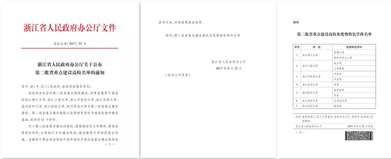 8月25日,《浙江省人民政府辦公廳關于公布第二批省重點建設高校名單的通知》(浙政辦發[2017]93號)正式印發,我校入選省重點建設高校。