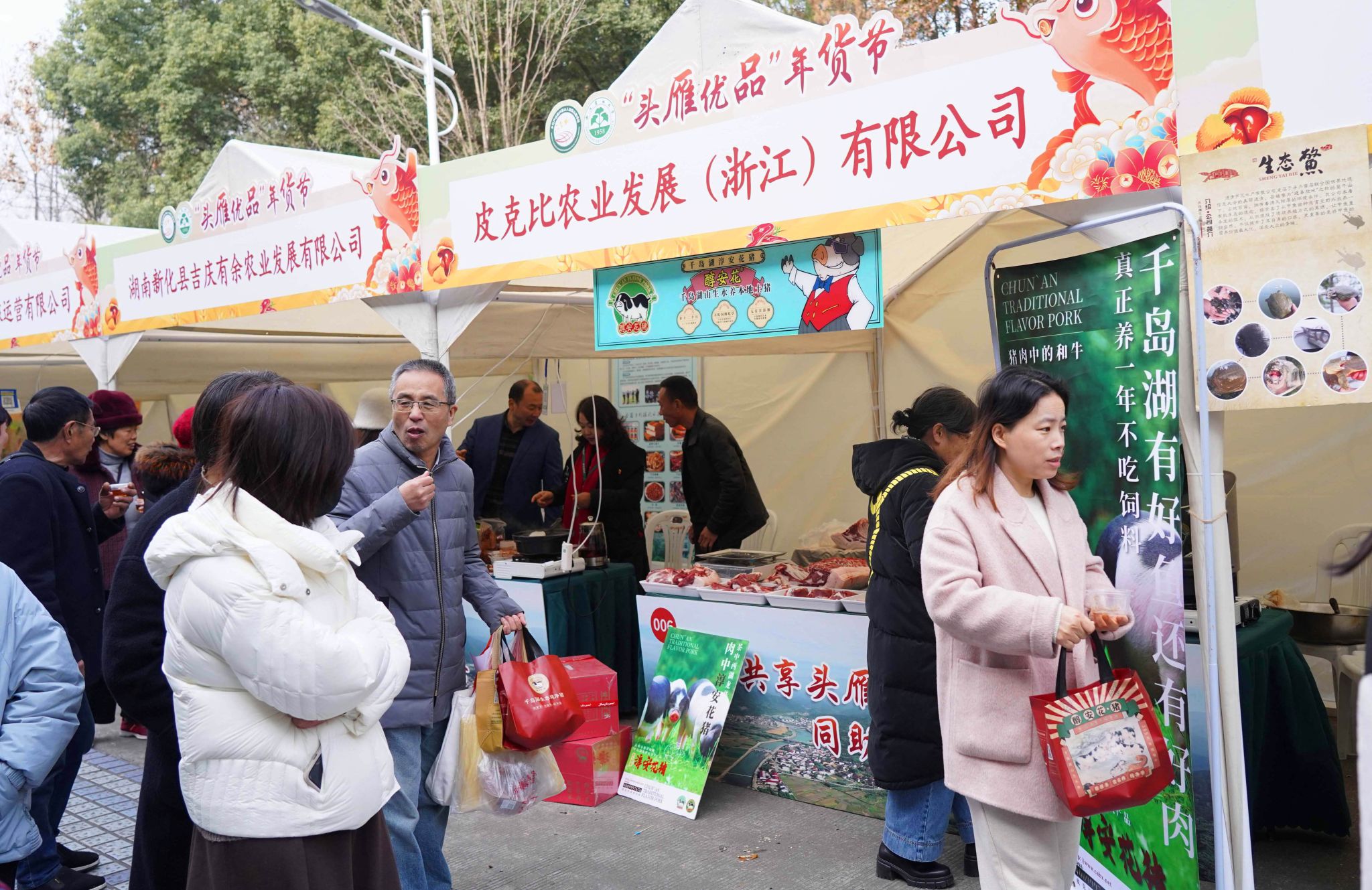 12月27日,在浙江農林大學“頭雁優品”年貨節上,由全國各地“頭雁”企業、“農創客”以及該校科研團隊帶來的特色農產品,憑這原生態高品質,再加上科技感滿滿、品種多多受到了師生、市民的好評,大家在點贊的同時紛紛下單購買,有的還現場打包給家人朋友用快遞郵寄一份。