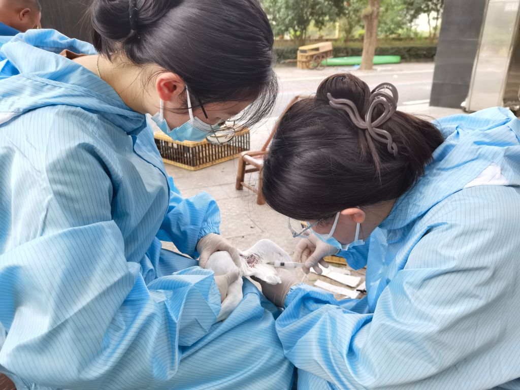 學(xué)生們通過本次調(diào)研和采樣,掌握了現(xiàn)場(chǎng)流行病學(xué)調(diào)查方法、鴿咽喉拭子采集、鴿肛門拭子采集、鴿翅靜脈采血等獸醫(yī)臨床技術(shù),提升了自身的實(shí)踐能力。