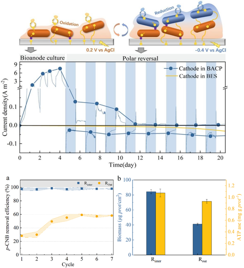 因此,該團隊開發了一種耦合PRB和BES的生物陰極-陽極耦聯系統(BACP),采用極性周期反轉(PPR)方法構建了由Geobacterp-CNB降解細菌組成的共生陰極生物膜。