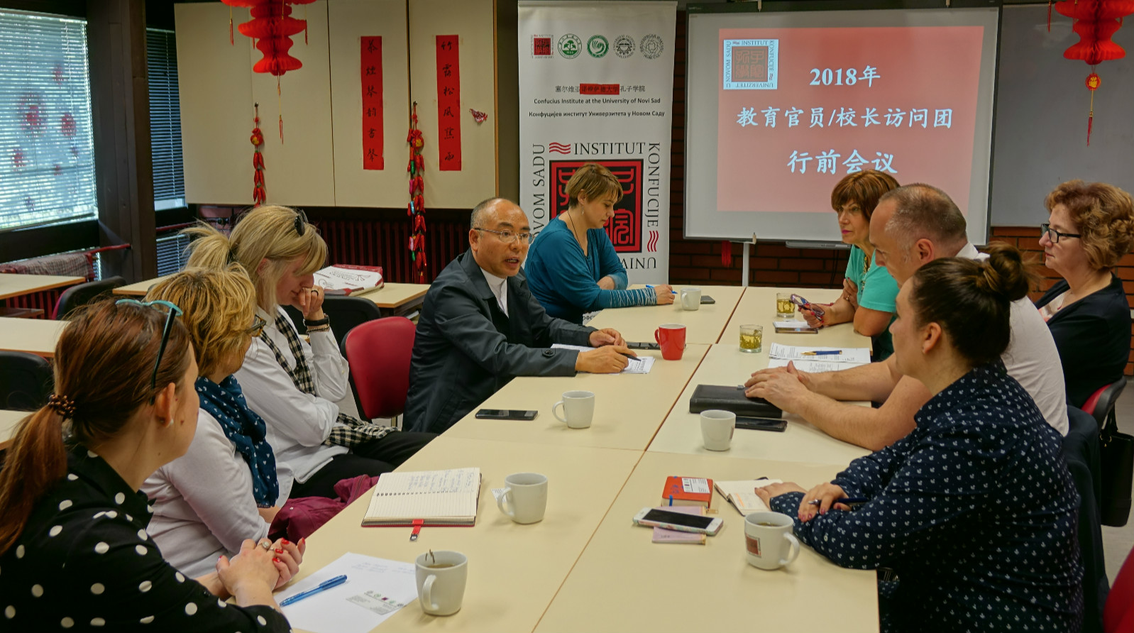 當地時間4月13日,塞爾維亞諾大孔院召開了2018年赴華教育官員/校長訪問團行前會議,就4月底塞爾維亞教育官員/校長赴華訪問的行程安排及活動內容等事宜進行了講解。伏伊伏丁那省教育廳副廳長杜西察·拉基奇(Du?ica Raki?)、諾維薩德大學副校長畢麗安·娜阿布拉莫維奇(Biljana Abramovi?)及合作教學點中學的校長等參加會議,會議由中方院長陳晦主持。
