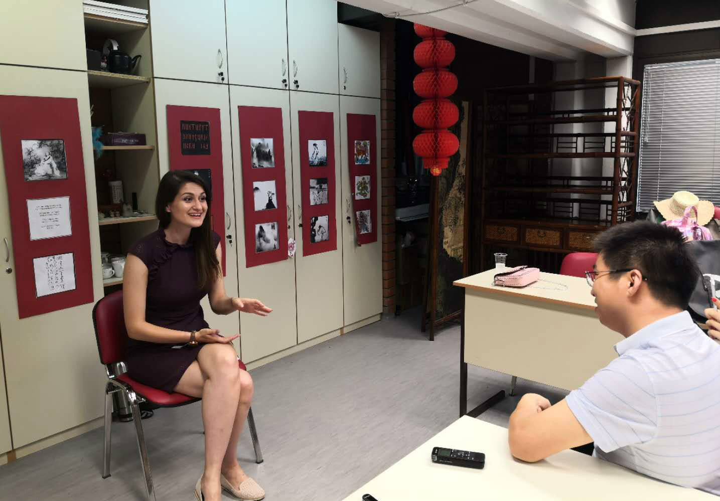 諾大孔院外方院長伊凡娜·捷萬契維奇·賽凱露絲(Ivana?ivan?evi? Sekeru?)向記者們介紹了學院的基本情況和辦學特色;中方院長陳晦向記者們介紹了學院近年來在教學及文化活動上所取得的成就。代表塞爾維亞剛在中國長沙參加完“大學生漢語橋”的友萬娜(Jovana Andrejic)接受了人民日報等媒體的采訪,講敘了中國給她的美好印象以及對“一帶一路”倡議的理解。