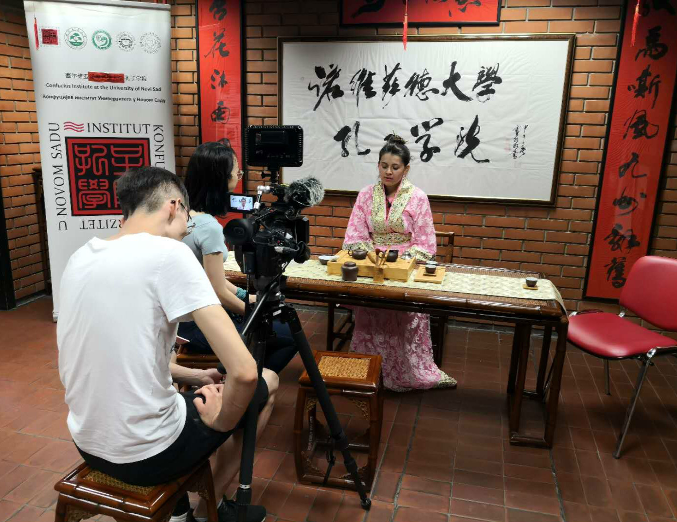 采訪中,記者團觀看了學生們的文藝表演。2018年中學生漢語橋塞爾維亞賽區冠軍丹科·戈武里奇(Danko Gavri?)演唱了快板;零基礎開始學習中國畫三年的學員柯愛晨(Kovac Hajnalka)作寫意畫,并展示了她工筆畫的得意之作;茶文化忠實粉絲吉吉(Srdjana Petrovic)表演了茶藝。